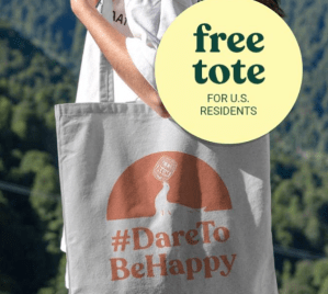 Hurry over to claim a FREE “Dare To Be Happy” Tote Bag! Note you must be 21 or over to claim this.