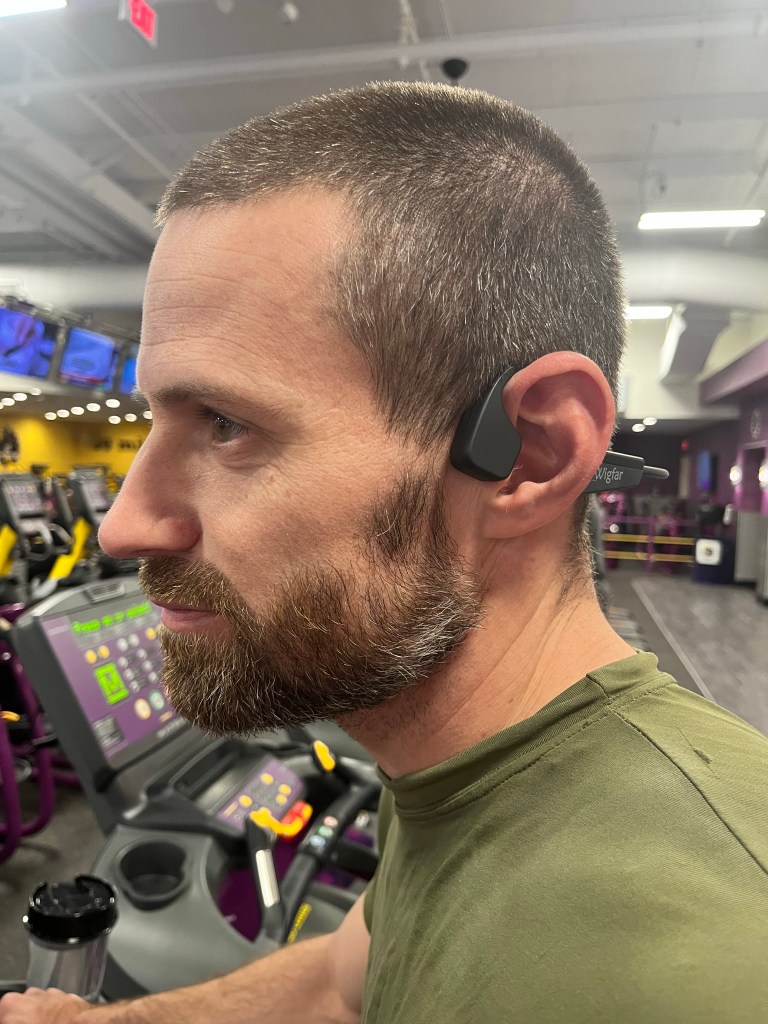 My husband and I try to go to the gym as often as our schedules allow. I go 5-7 times a week and he’s able to go 2-3 times a week. I have used the same pair of headphones for years, but my husband has wanted to try bone conduction headphones for a while. We decided it was about time to give them a go.
