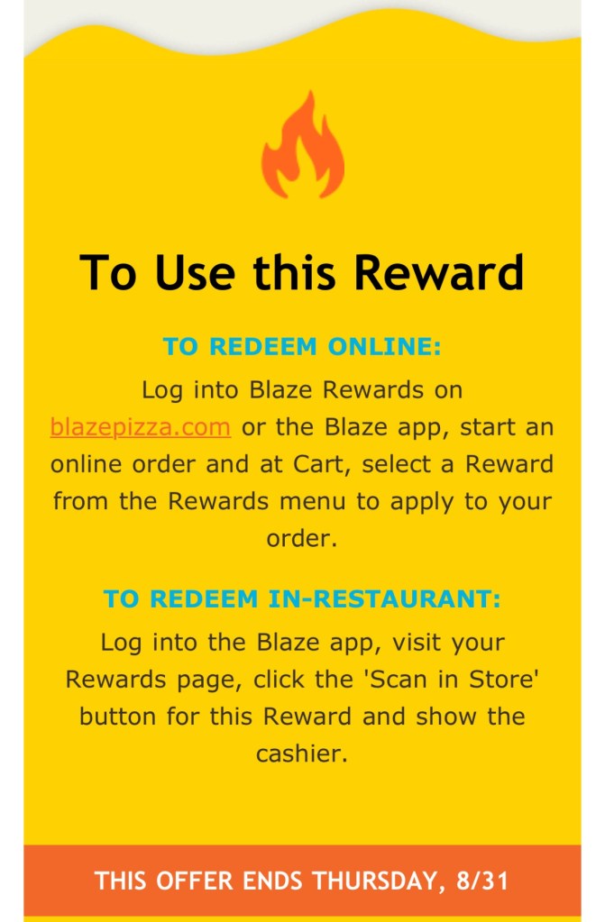 Score 35% Off your faves from Blaze so you can save more on what you crave most through Thursday 8/31. Cart sub-total must equal $20 or more (excluding taxes and fees) for Reward to register.