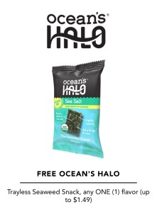 Right now you can request to try this seaweed snack for free! Just enter your email on this form and click the link they send you on your phone. You’ll then need to select the store that you’re going to redeem the offer at and follow the instructions to get the Ocean’s Halo Seaweed Snack for free. Woohoo!