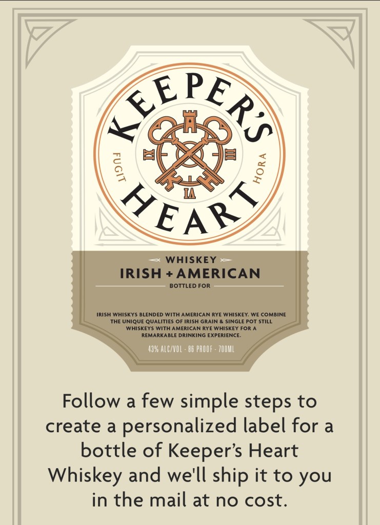 Head on over here to grab your FREE Personalized Keeper’s Heart Whiskey Label!
